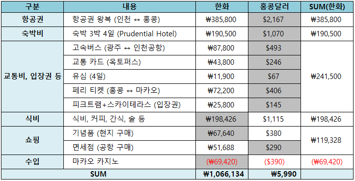 숙박비는 홍콩 호텔인걸 감안하면 저렴했고