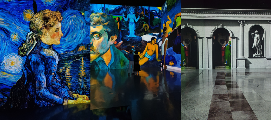 마지막 장소에는 세 가지 작품이 돌아가며 보였다. 분명 아무것도 없는 벽과 바닥이지만 실제와 구분이 안될 정도로 너무 멋있는 그림이 생겨났다. 진짜 작품이 하나씩 바뀔 때마다 너무 신기해서 내 눈을 의심했다.