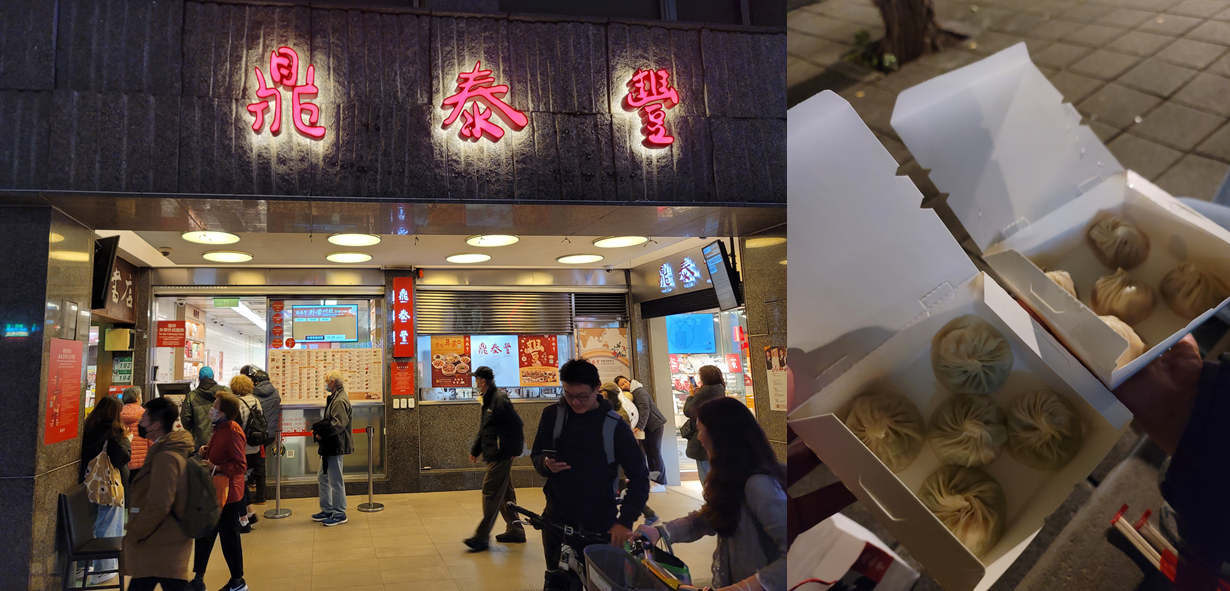 저녁은 대만에서 유명한 딤섬가게 딘타이펑에서 먹으려했지만 포장만 가능했다.