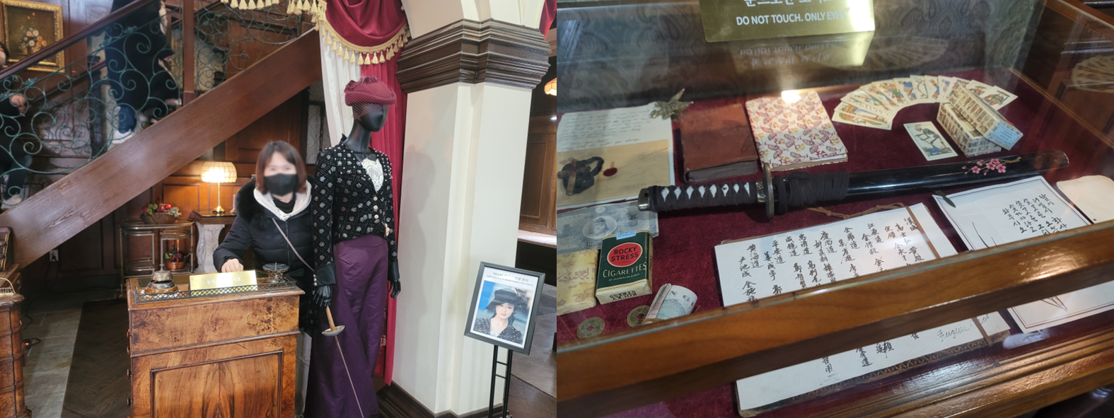들어가보면 쿠도 히나역을 맡은 김민정이 실제 사용했던 의상과 소품이 있었다.