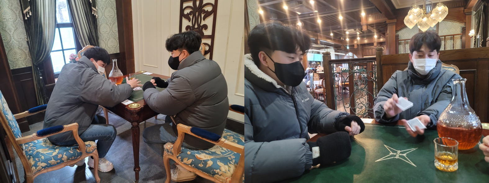 그 와중에 드라마 소품인지 테이블에 원카드가 놓여있길래 동생이랑 원카드를 한판했다.