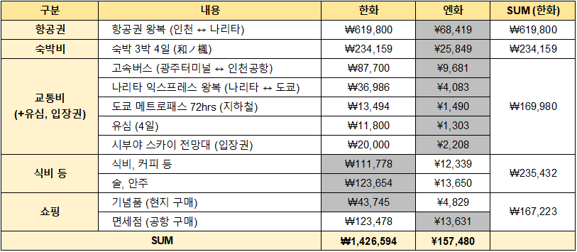 도쿄 여행 경비는 살면서 가본 여행 중 가장 많았다.