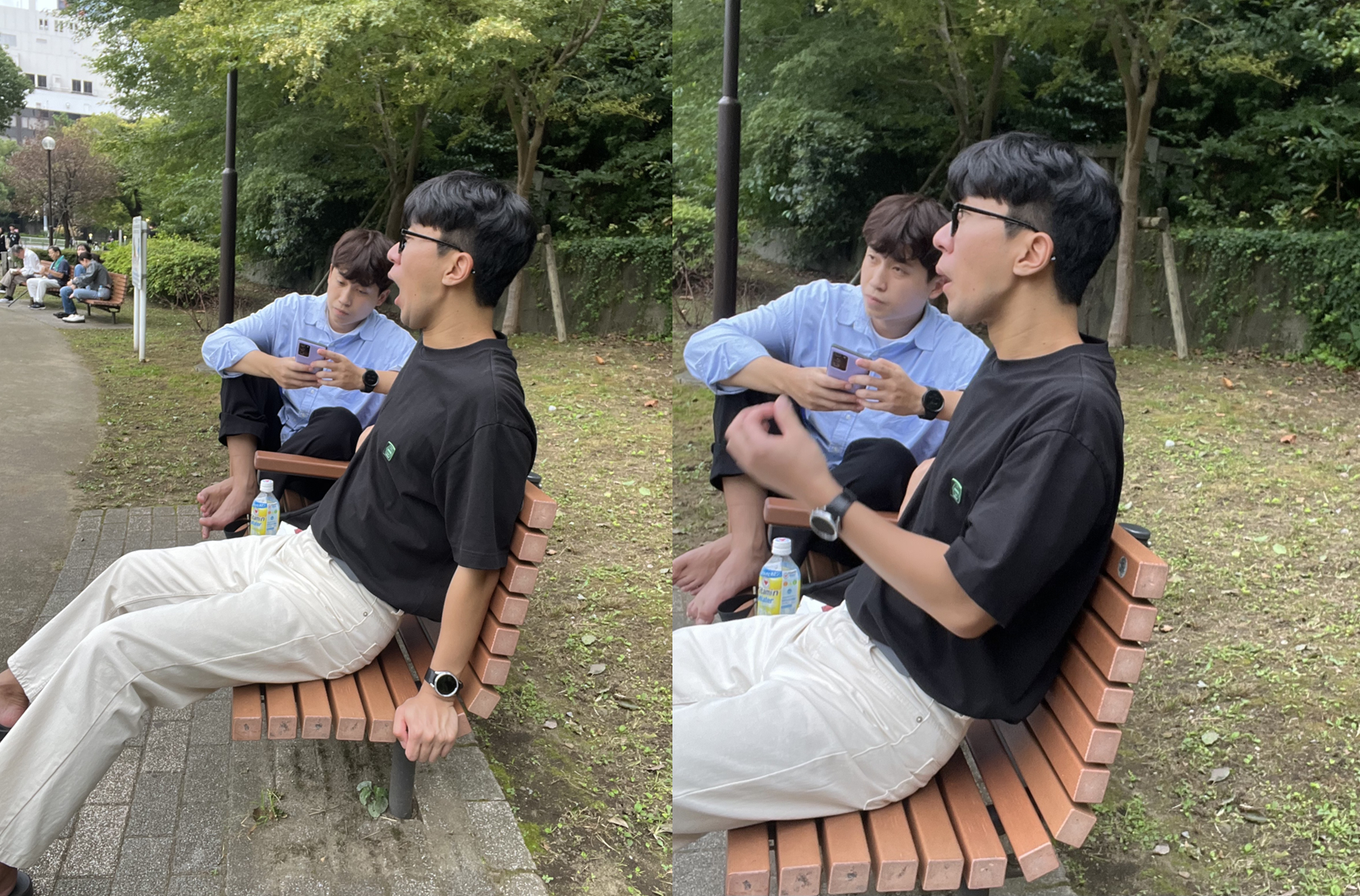 그리고 옆 벤치에서는 노숙자들 못 자게 가운데 팔걸이를 만들어 놨음에도 어떻게든 자는 태영이형.