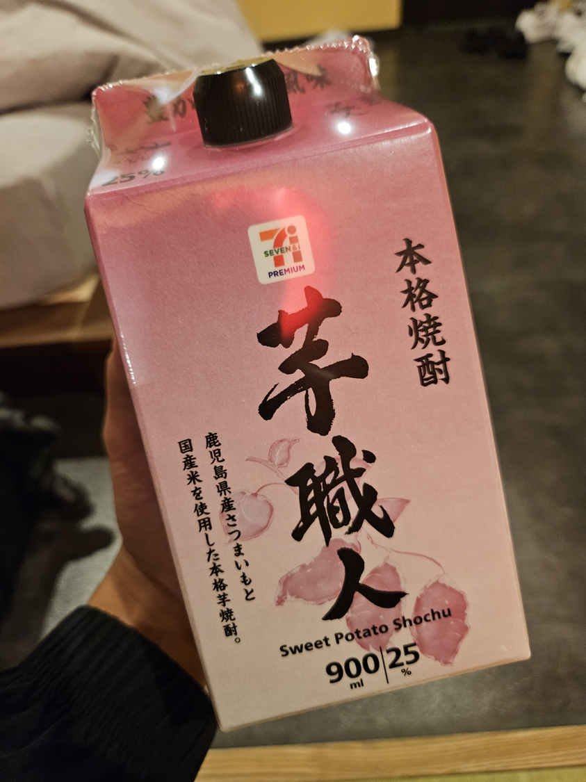 그러다가 사케 얘기가 나와서 편의점에서 싼 거로 골라왔는데 지금 보니 고구마 소주였다.